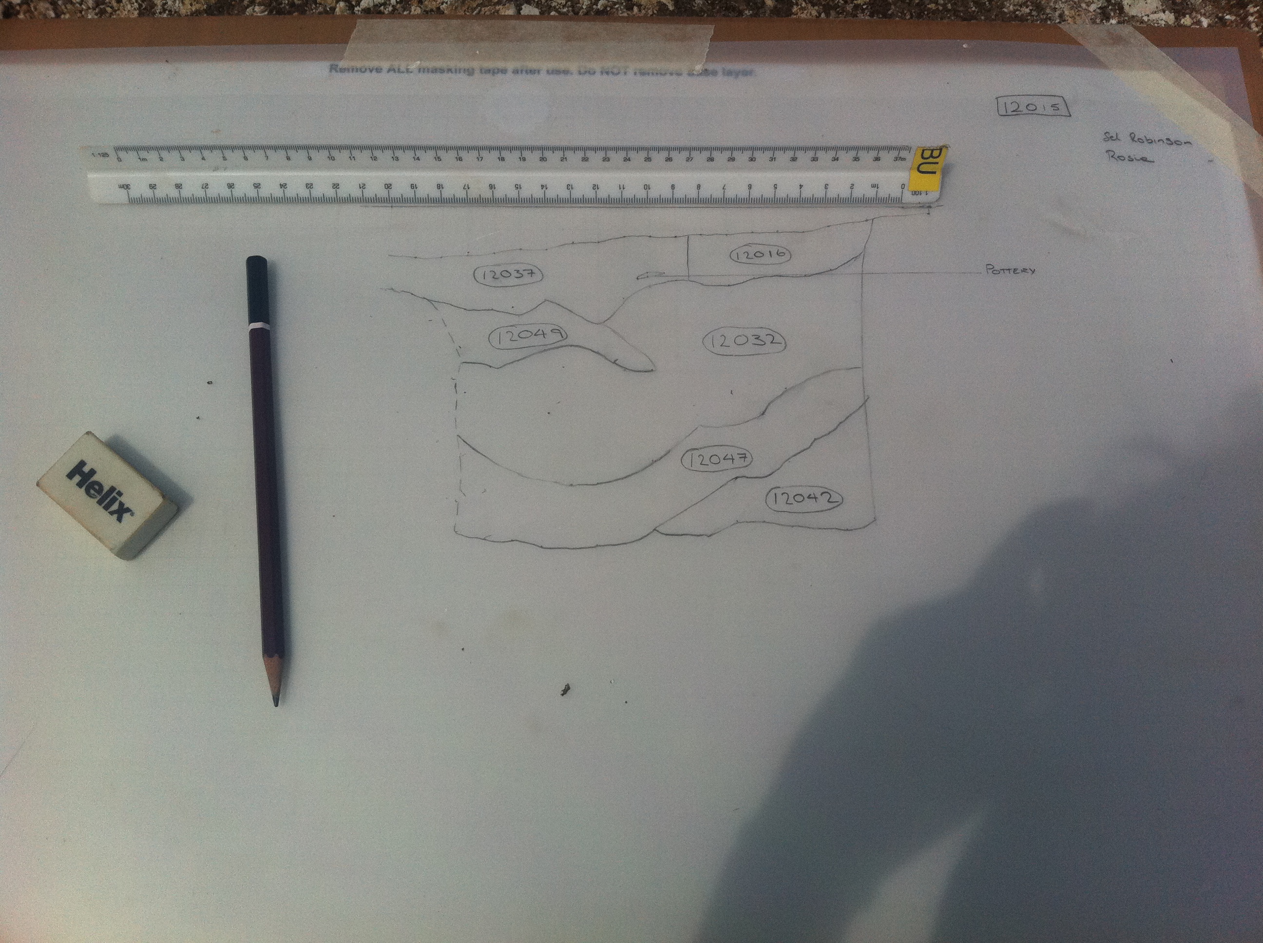 The flint mine that was discovered in Trench 2. Within this flint mine, students unearthed the skeletal remains of an 18 month old juvenile.